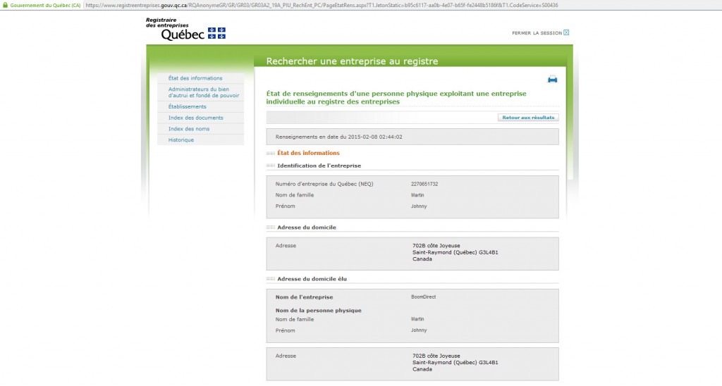 El consejero delegado de auge directo es el Quebec Johnny Martin: https://www.facebook.com/jmartinacn