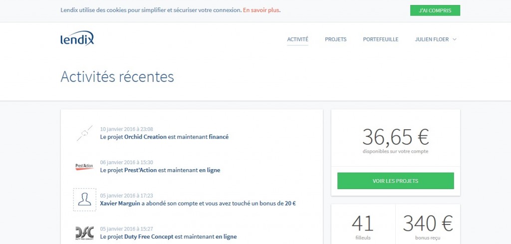 Nivel figura Lendix c´est en 31 de diciembre de 2015, 57 proyectos (estudio 5 780), por un monto total de €11 322 752. La cantidad total prestada es €1 351 338. Reembolsos pagaron a los prestamistas €145 636. Intereses pagados a los prestamistas son 145 636 €.
