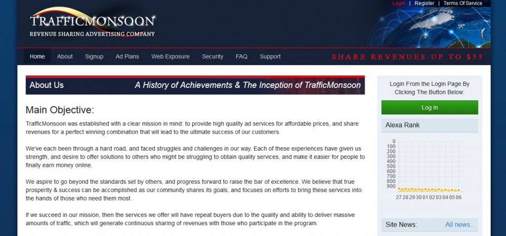 Au 11 aout 2015, trafficmonsoon est classée parmi les 1075 sites les plus visités au monde (Edit du 8 octobre: trafficmonsoon est désormais 892 ème site le plus visité). À mon avis, cela a de quoi montrer combien il y a d´escrocs et de gens qui souhaitent se faire plumer…